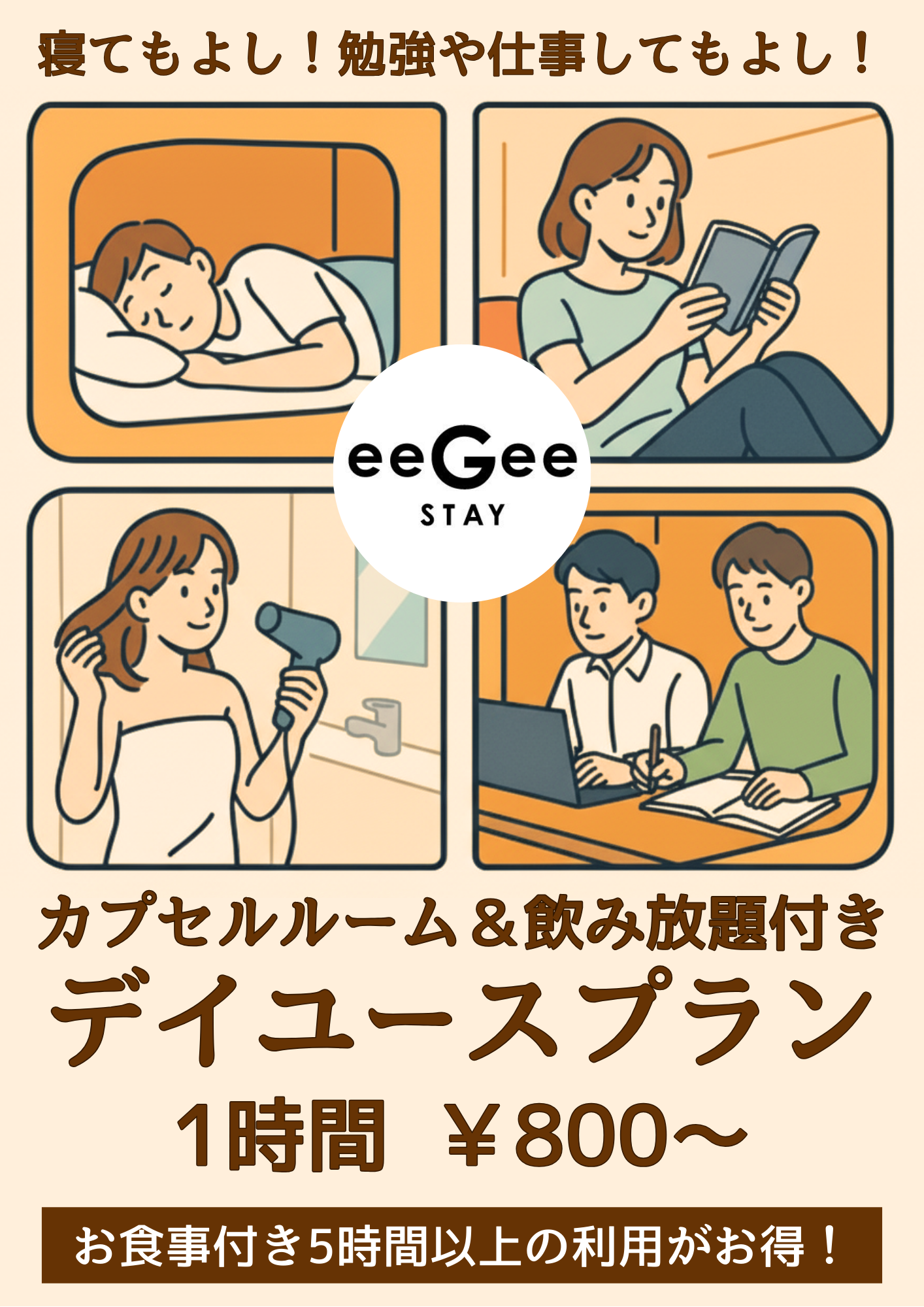 ■6時間プラン      ・・・・ 2,800円※食事付・シャワー付